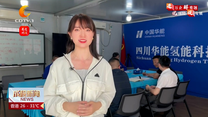 本台记者 张涵真:现在我们来到的是第二家企业——四川华能氢能科技有限公司,这是一家从事绿氢生产的企业。这次会议的地点比较特殊,我们直接在企业的临时办公场所召开的现场会。