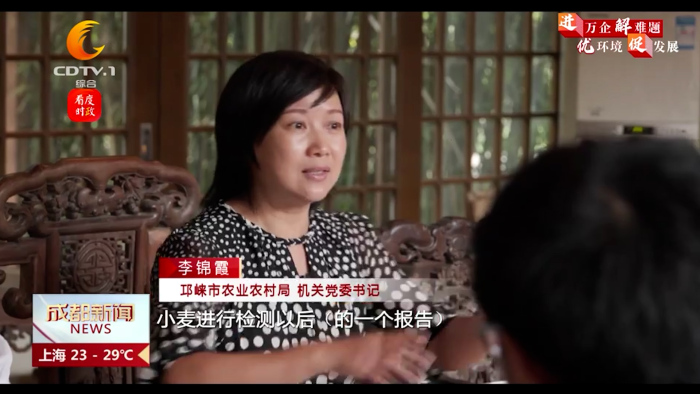 邛崃市农业农村局机关党委书记 李锦霞:正好我们也了解到你们需要,高品质小麦这种原粮作为你们酿酒原料这种问题,我们前期通过走访也了解到一些生产主体它们也确实还有库存的这种小麦。