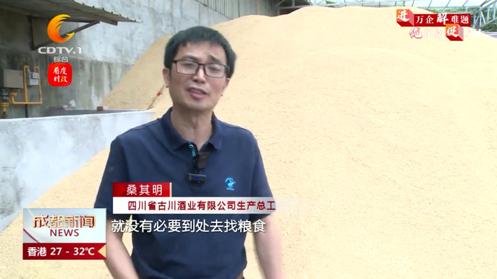 四川省古川酒业有限公司生产总工 桑其明:感谢政府给我们牵线搭桥,对我们企业也很有好处,就不用到处去找粮食,可以认真搞好生产。