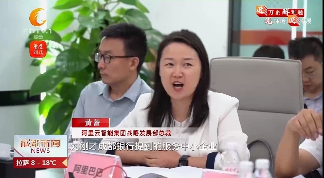 阿里云智能集团战略发展部总裁 黄蕾:现在我们是聚焦在四川,包括成都的智转数改。刚才成都银行提到的服务中小企业我觉得我们也可以合作,因为现在我们也是在这个全力在支持中小企业的算力需求。我们也希望后续能够常态化地开展这样的对接会,我们希望有机会多一些这方面的汇报,也愿意通过技术扩大在成都的专业建设和投资布局。