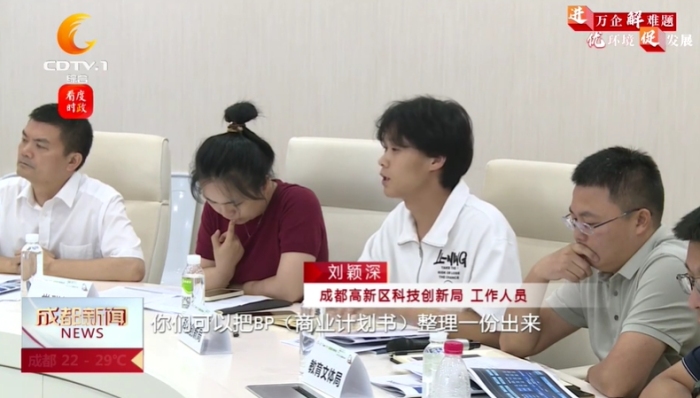 成都高新区科技创新局工作人员 刘颖深:你们可以把BP(商业计划书)整理一份出来,写清楚你们整体的发展情况,尤其是要标明你们具体的(市场)估值以及你们打算融多少,融完之后干嘛,把这个讲清楚,把BP给我们,我们和区里合作的投资机构推荐一下。