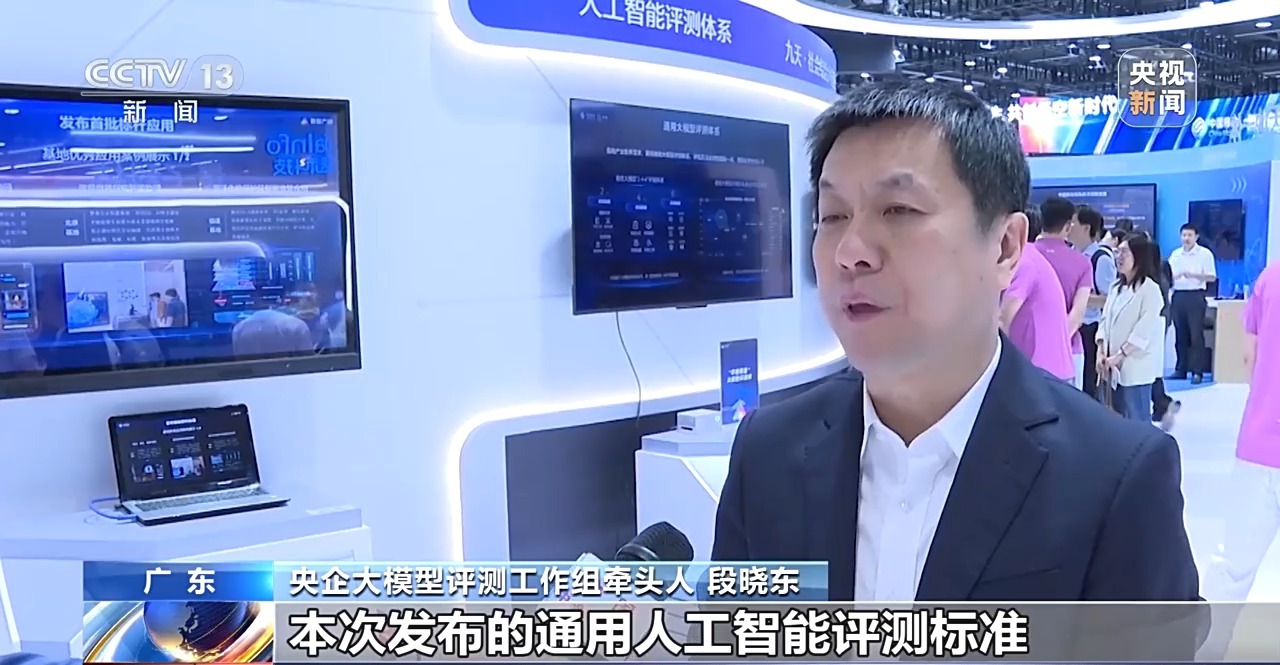央企大模型评测工作组牵头人 段晓东:我们已经建立了“弈衡”大模型评测基地,评测标准拥有海量数据。本次发布的通用人工智能评测标准,应用丰富的行业场景,涵盖了包括通讯、交通、能源、制造等多个领域。