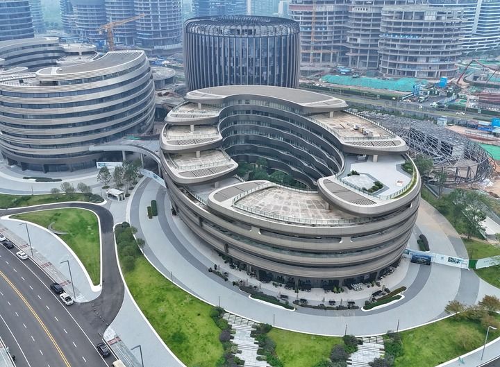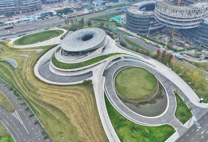 一座座设计前卫的圆形建筑,一层层如花瓣般交错布局的办公空间……登上成都科创生态岛,犹如置身科幻电影中;而花香沁人的环岛生态绿带,四季常青的屋顶空间,又时刻提醒着它的真实。