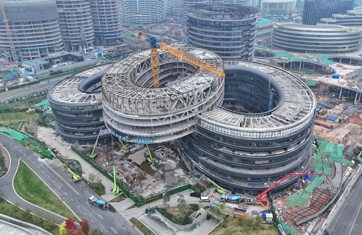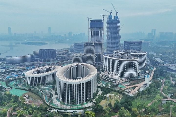 这是成都科创生态岛人工智能与机器人产业特色楼宇W7(10月16日摄,无人机照片)。新华社记者 刘坤 摄
