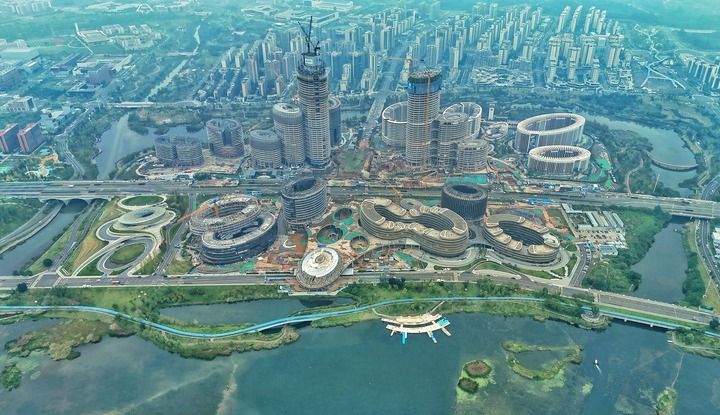 这是10月16日拍摄的成都科创生态岛(无人机全景照片)。新华社记者 刘坤 摄