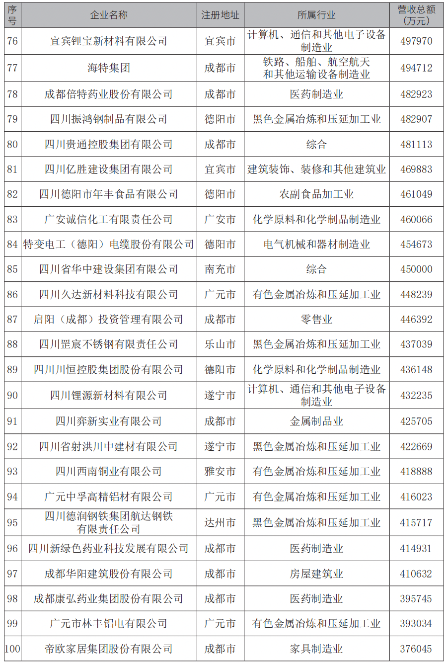 除此之外,今年省工商联还首次发布四川制造业民营企业100强和四川服务业民营企业50强两个榜单。