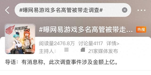 11月7日,“曝网易游戏多名高管被带走调查”话题登上热搜。