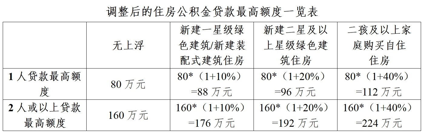 一是提高住房公积金贷款最高额度,将“一人”和“两人或两人以上”住房公积金贷款最高额度分别由原来的70万元和120万元,提升至80万元和160万元。