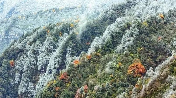 近期,随着气温下降,巴中市的光雾山已化身冰雪世界。