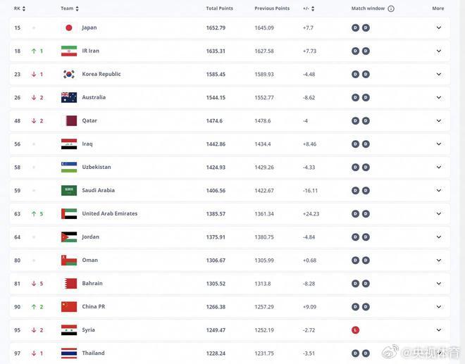 上升2位!国足世界排名升至第90位