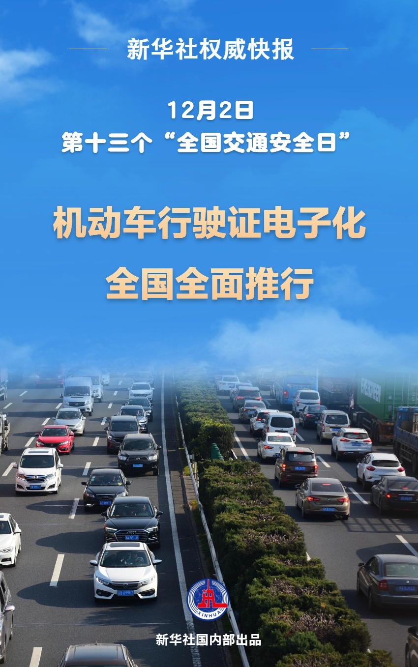 记者1日从公安部获悉,自今年12月2日起,机动车行驶证电子化在全国全面推行,全国所有车主均可通过“交管12123”APP申领电子行驶证。