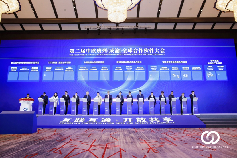 在本次大会上,中欧班列(成渝)与多个地区及行业的合作伙伴签署了多项合作协议。其中,土耳其太平洋环球物流集团授牌给成渝两地班列平台运营公司“中间走廊成渝中心”,并签订中间走廊合作项目协议。
