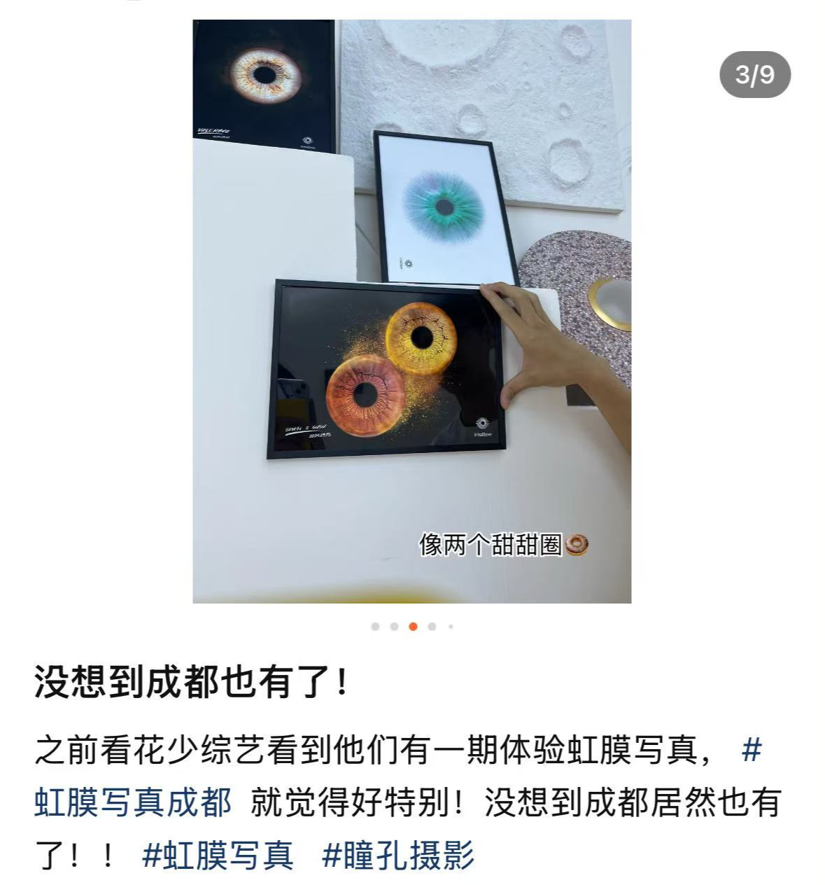 在社交网站上,许多网友分享了拍摄了虹膜写真的体验。