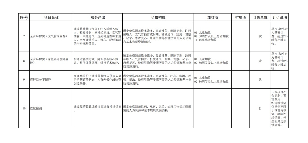 同时,考虑到患者麻醉监测需求主要与患者病情危重程度密切相关,危重患者、儿童、老年人在实施麻醉时,意外情况发生率更高,需要提供更多监测。为充分体现服务产出导向,在麻醉项目中,为危重患者、儿童、老年人设立加收项,保障“一老一小”患者手术安全。