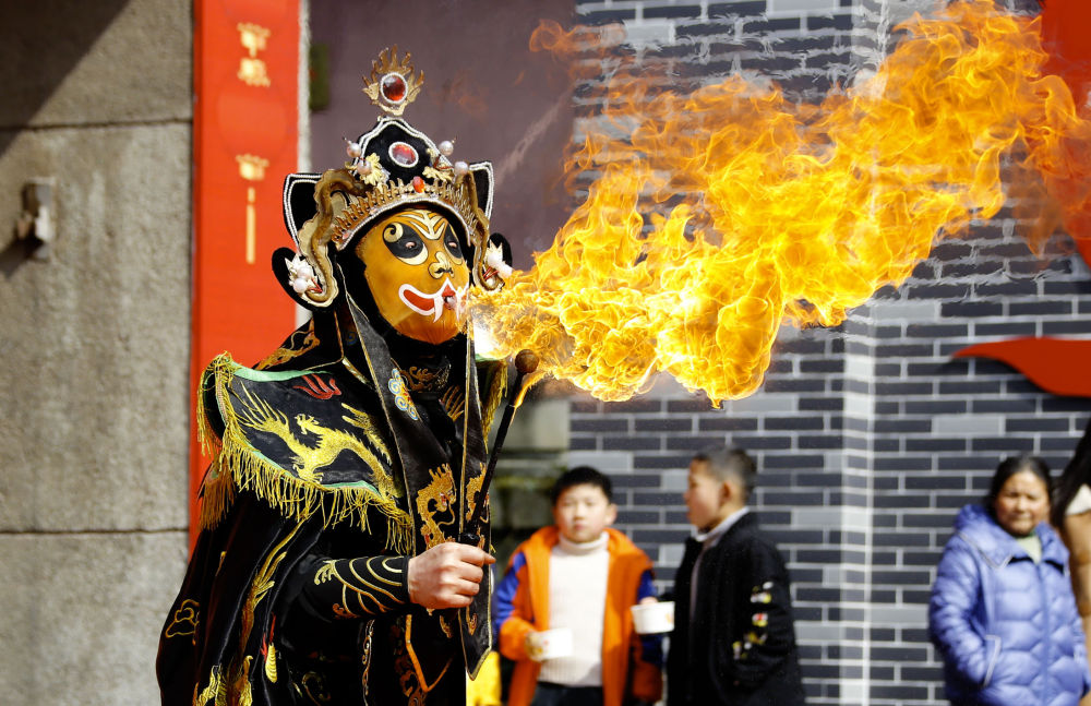 演员表演传统川剧《变脸》。新华社发(付海旭 摄)