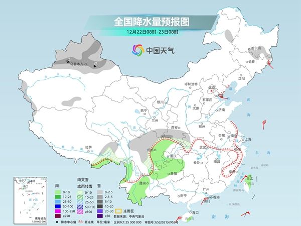 后天,新疆沿天山地区和伊犁河谷、西藏南部和西部等地部分地区有小雪。西南地区东北部、云南东北部、海南岛、台湾岛等地部分地区有小雨,其中,台湾岛中东部和南部等地部分地区有中雨。
