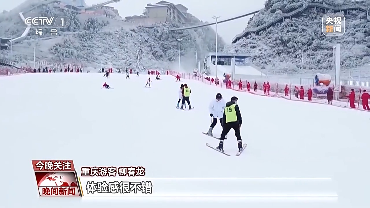 重庆游客 柳春龙:今天6点多钟从下面跑上来,体验感很不错。雪道长度和坡度对于初学者来说很不错。