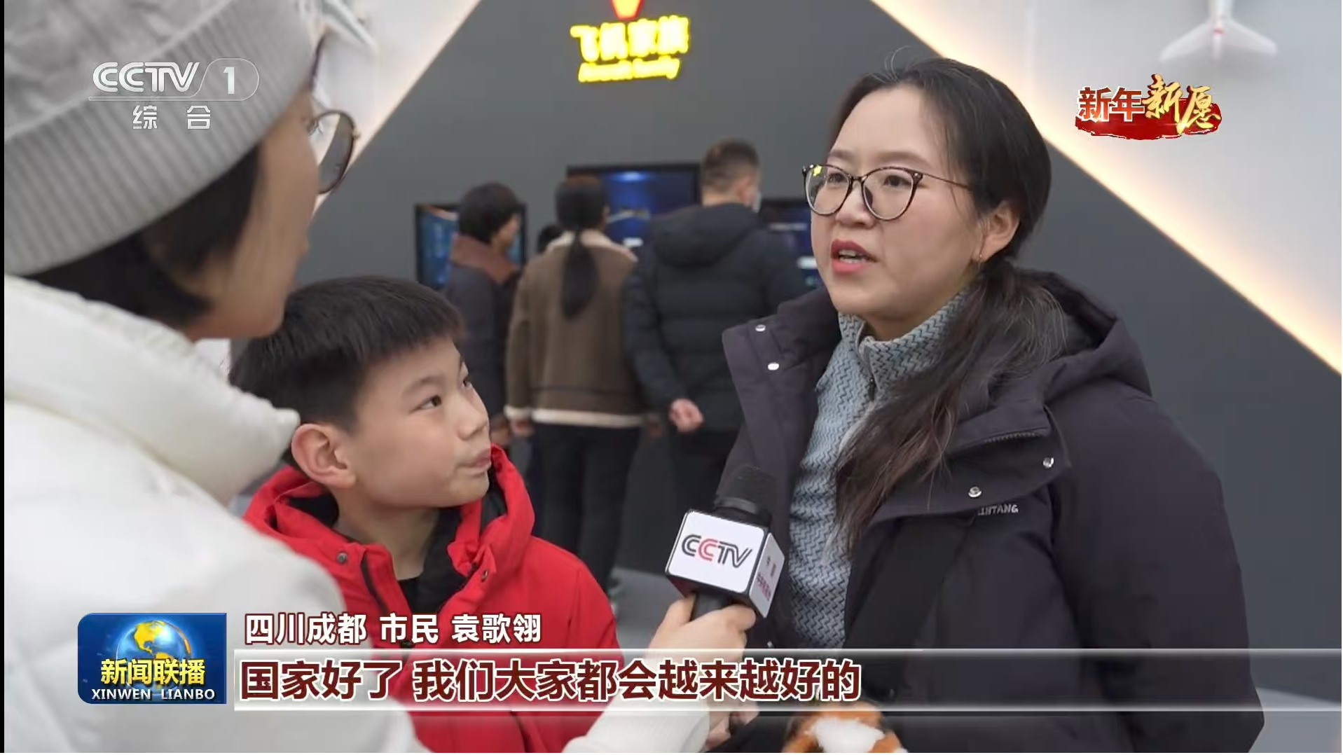 1月1日,央视《新闻直播间》播出《元旦海采 新年新愿:感恩来路 共赴新程》与《新年新愿 :新岁序开 共赴热爱》,其中记者在成都科技馆、都江堰等地分别采访市民游客,了解他们的新年愿望。大家纷纷表示,新的一年会继续热爱生活、积极向上。