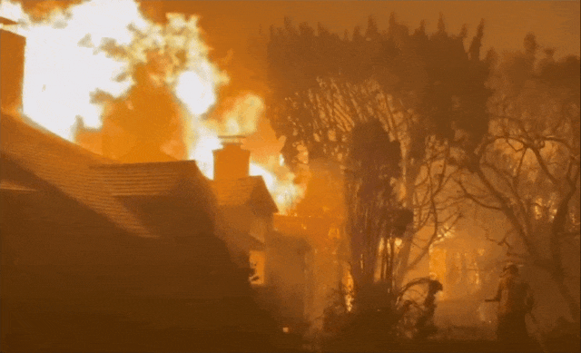 数千座建筑在火灾中损毁,其中包括好莱坞明星的豪宅,如蝙蝠侠扮演者的价值2050万美元的住所。另有上万栋建筑处于危险之中。