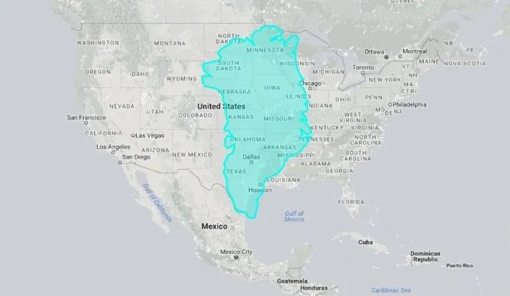 格陵兰岛与美国面积比较示意图。图片来源:欧洲地球科学联合会(EGU)文章截图