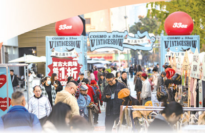 音乐起,人群聚。距离步行街不远,青年磁场购物中心大门前,一场嘉年华活动拉开帷幕。头戴贝雷帽、脚着长筒靴,伴着萨克斯与小提琴交织的音乐节奏,一位女青年与同伴轻轻起舞……集市摊位上,各类小商品琳琅满目。