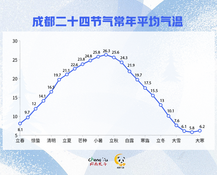 需注意的是,目前已经立春但并不等于入春。对于成都而言,按照气候季节划分标准,春季的日平均气温一般稳定在10℃以上,立春节气一般在2月4日前后,以温江国家站为代表,成都的平均气温为6.7℃,远远达不到入春的条件。