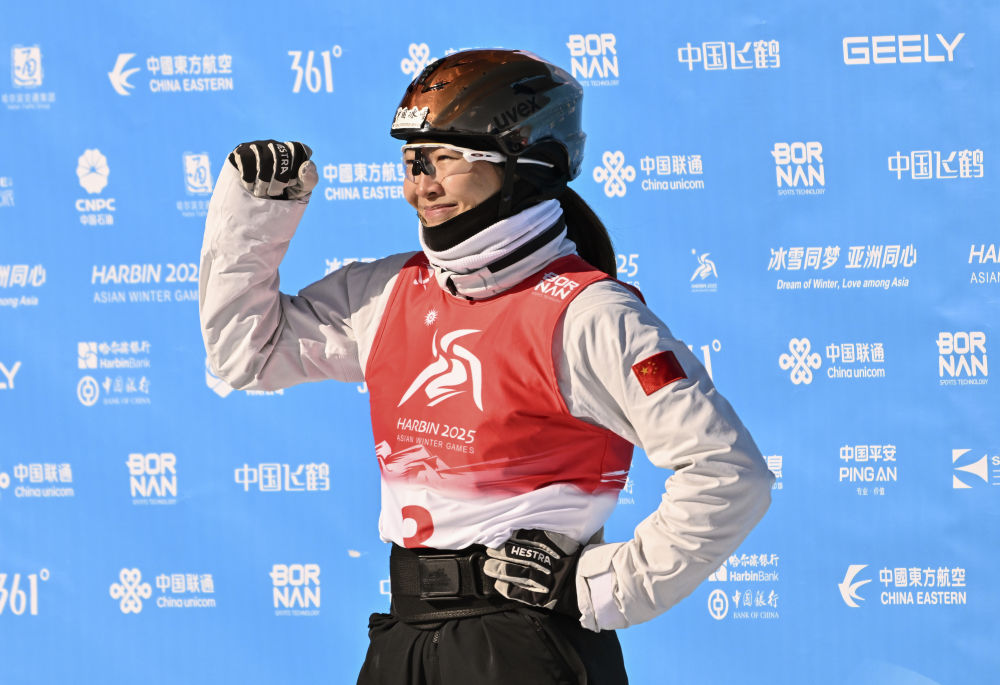 2月9日,在哈尔滨亚冬会自由式滑雪女子个人空中技巧决赛中,中国选手徐梦桃摘得金牌。
