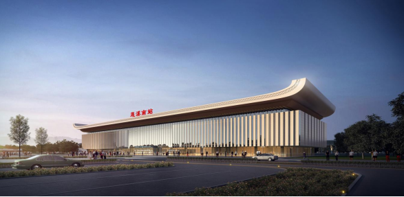 同时,在乐至站建设现场,首桩顺利开钻。乐至站是乐至县首座高铁站,未来,将成为成达万高铁与成渝中线高铁交汇共用的站点。据中铁建工集团成达万高铁站房工程指挥部项目总工刘一樉介绍,乐至站建筑面积14000平方米,站房造型取自与山水环境交融的川南民居形象,以“钟灵毓秀 山水乐至”为设计理念,以层叠斜屋面设计与山体起伏相呼应,呈现迎山川之水之意向,以立面进退关系丰富建筑层次,且将绿意植入建筑之中,形成惬意的旅途环境,呈现出一座简洁舒展、合聚向上的新中式交通建筑。