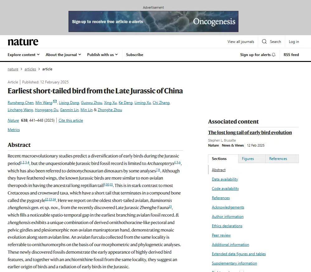 政和八闽鸟的研究首次揭示了现代鸟类的身体构型在侏罗纪就已经出现,将以尾综骨为代表的鸟类重要特征的出现时间向前推进了近2000万年,改写了鸟类演化的历史。