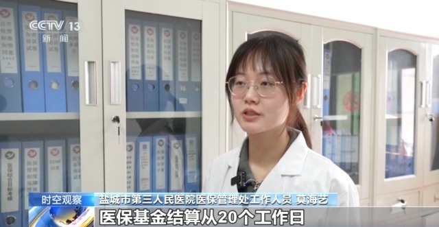 盐城市第三人民医院医保管理处工作人员 莫海艺:2025年1月份以来,医保基金结算从20个工作日缩短到1个工作日,极大地减轻了医院的回款压力,提高了医院的资金流转效率。
