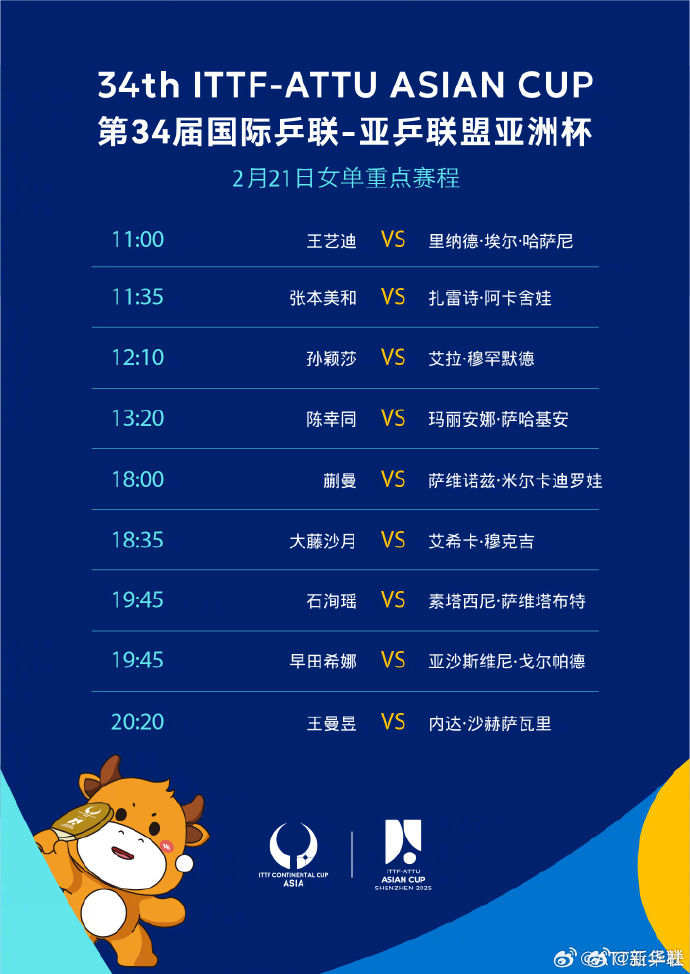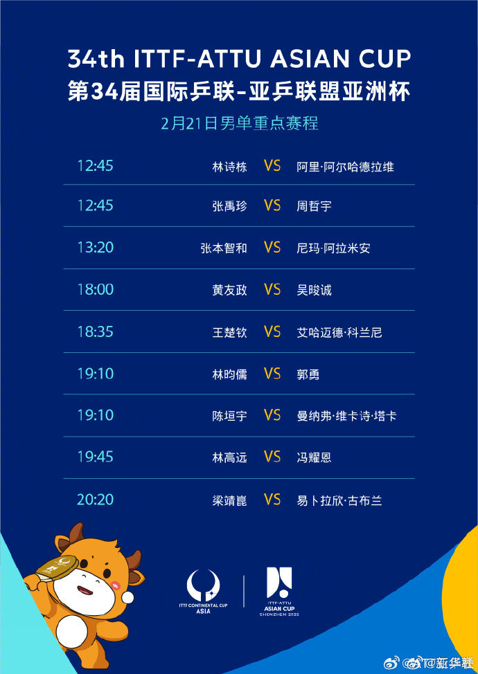 一起为国乒加油!国乒亚洲杯21日赛程表来了