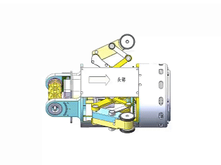 管道机器人的被动机构使机器人腿部可根据管径快速调整长度,以适应管径变化;主动机构实时控制机器人脚部与管壁的压力,保证机器人脚部与管壁可靠接触,使机器人具有足够前进动力。