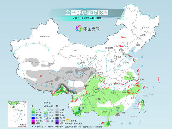 具体来看,中央气象台预计,今天,甘肃中南部、青海南部和东部、川西高原东部、山西南部、湖北西北部、西藏东部和南部等地部分地区有小雪或雨夹雪,其中,西藏东部、甘肃南部等地部分地区有中雪,局地大雪。江淮西部、江汉、江南、西南地区东部、华南、海南岛、台湾岛等地部分地区有小到中雨,其中,湖南西部局地有大雨。