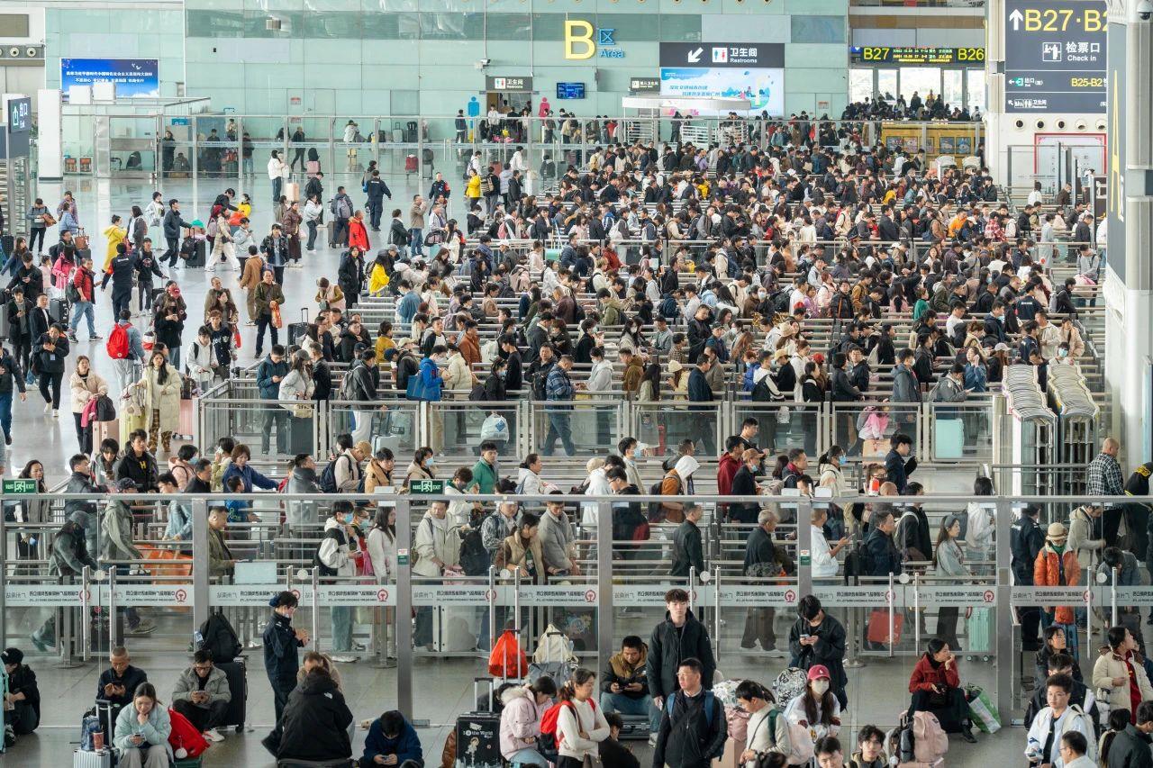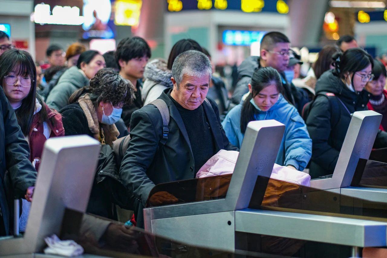 候车大厅里人潮涌动,旅客们带着大包小包,脸上写满了急切和期待。这种密集的人流正是春运最直观的体现。