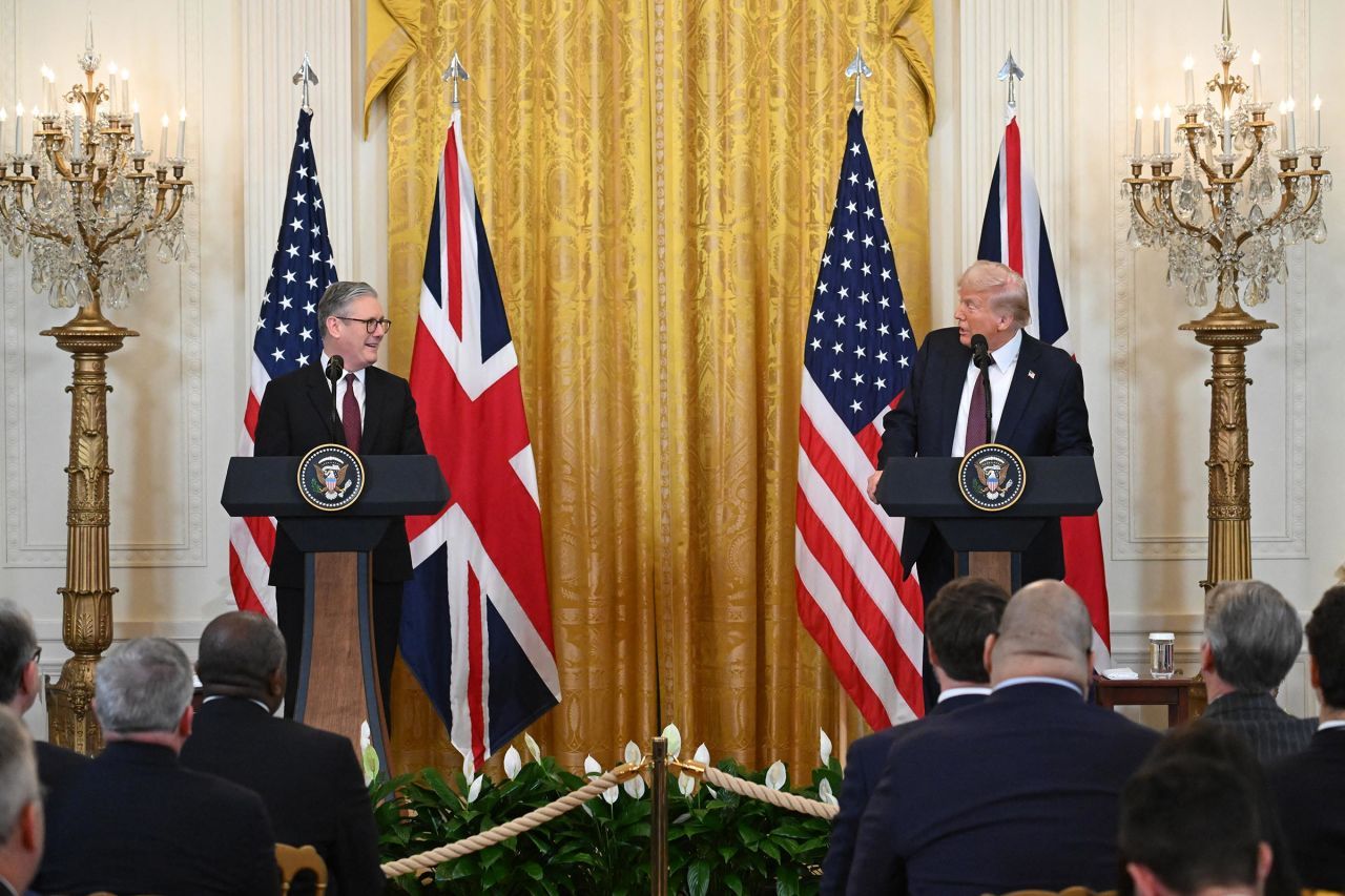 当地时间27日,美国总统特朗普与到访的英国首相斯塔默举行会晤。会晤后,双方召开了联合记者会。