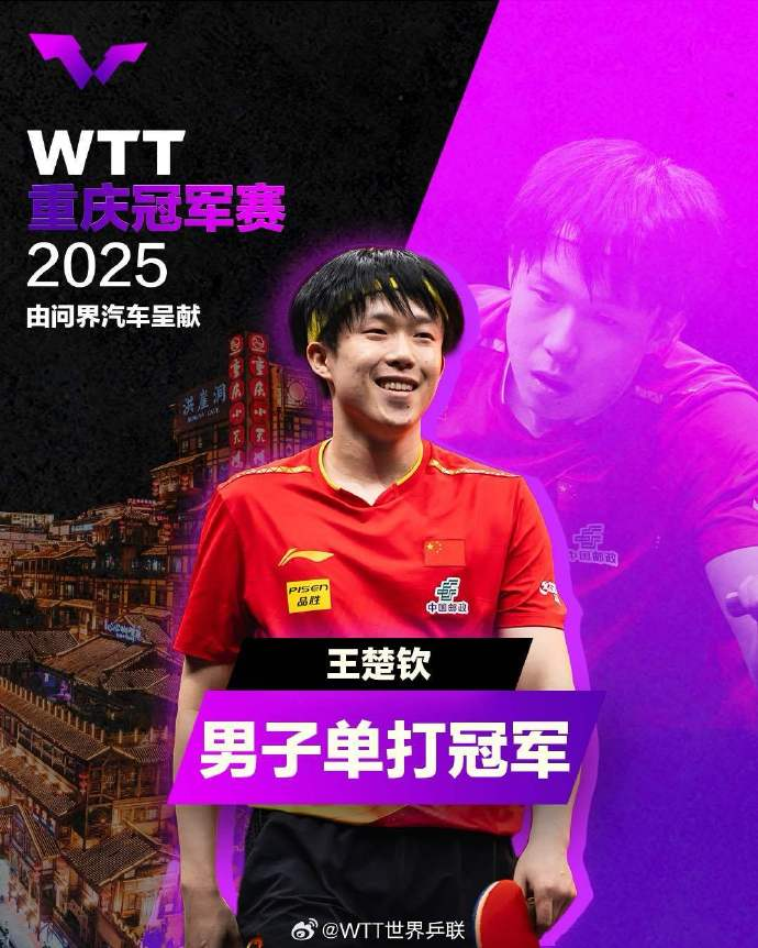 王楚钦男单夺冠,国乒包揽WTT重庆冠军赛男女单冠亚军