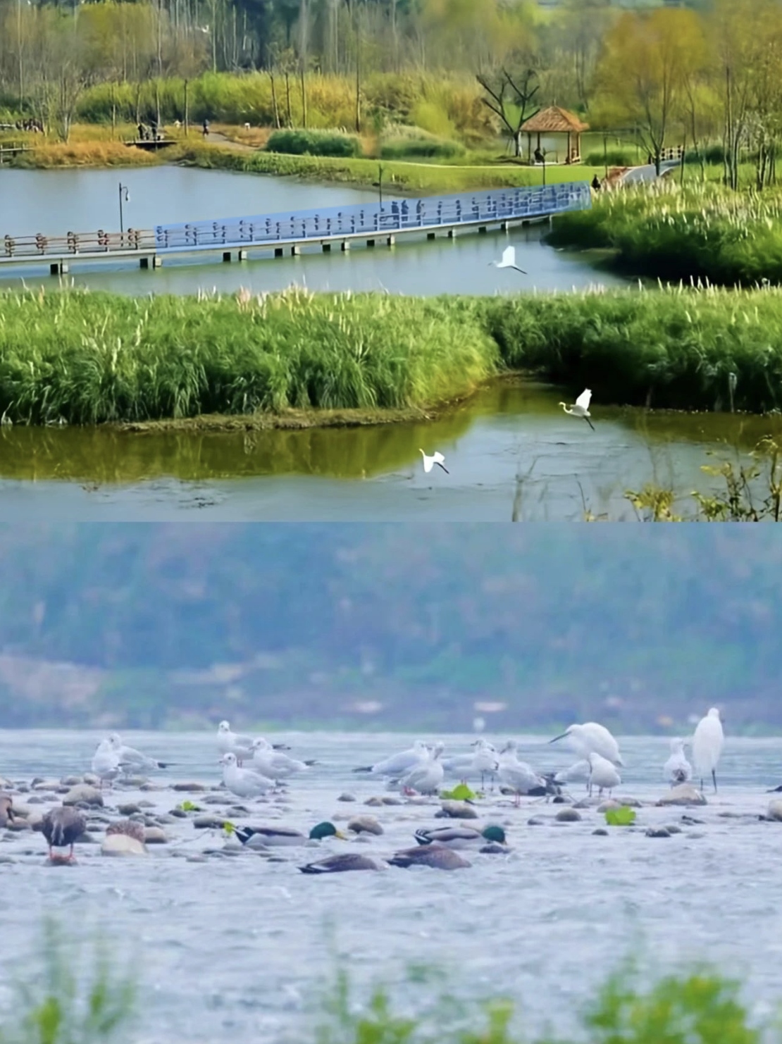 挑一个晴好时间沿着河边漫步,大家也许会发现绿头鸭在河中洗澡、大白鹭在浅滩“放空”、苍鹭在梳洗羽毛……一幅生动和谐的自然画卷将在眼前具象起来。带上长焦镜头站在观鸟长廊上,捕捉白鸟振翅掠过水面的绝美瞬间,再去探索公园里的昆虫馆,收获值满满!