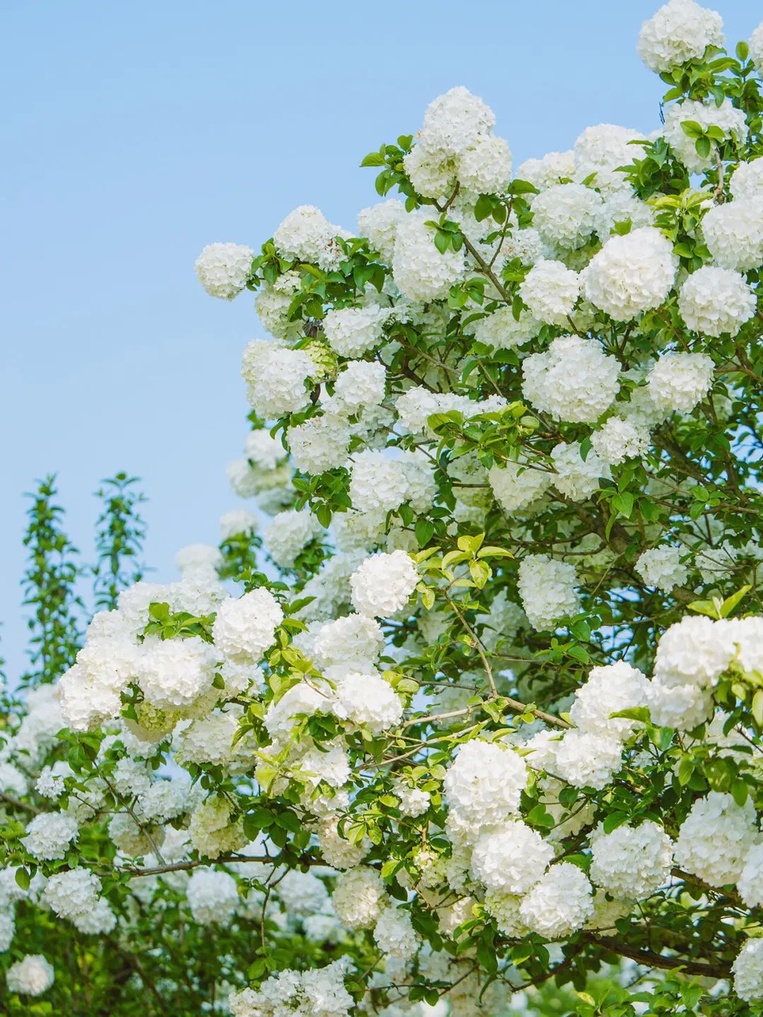 在四月的明媚春光中,雪白可爱的木绣球闪亮登场。那一团团、一簇簇,如雪球般的花朵挂满枝头,在绿叶的衬托下清新雅致,成为蓉城最美的限定风景。