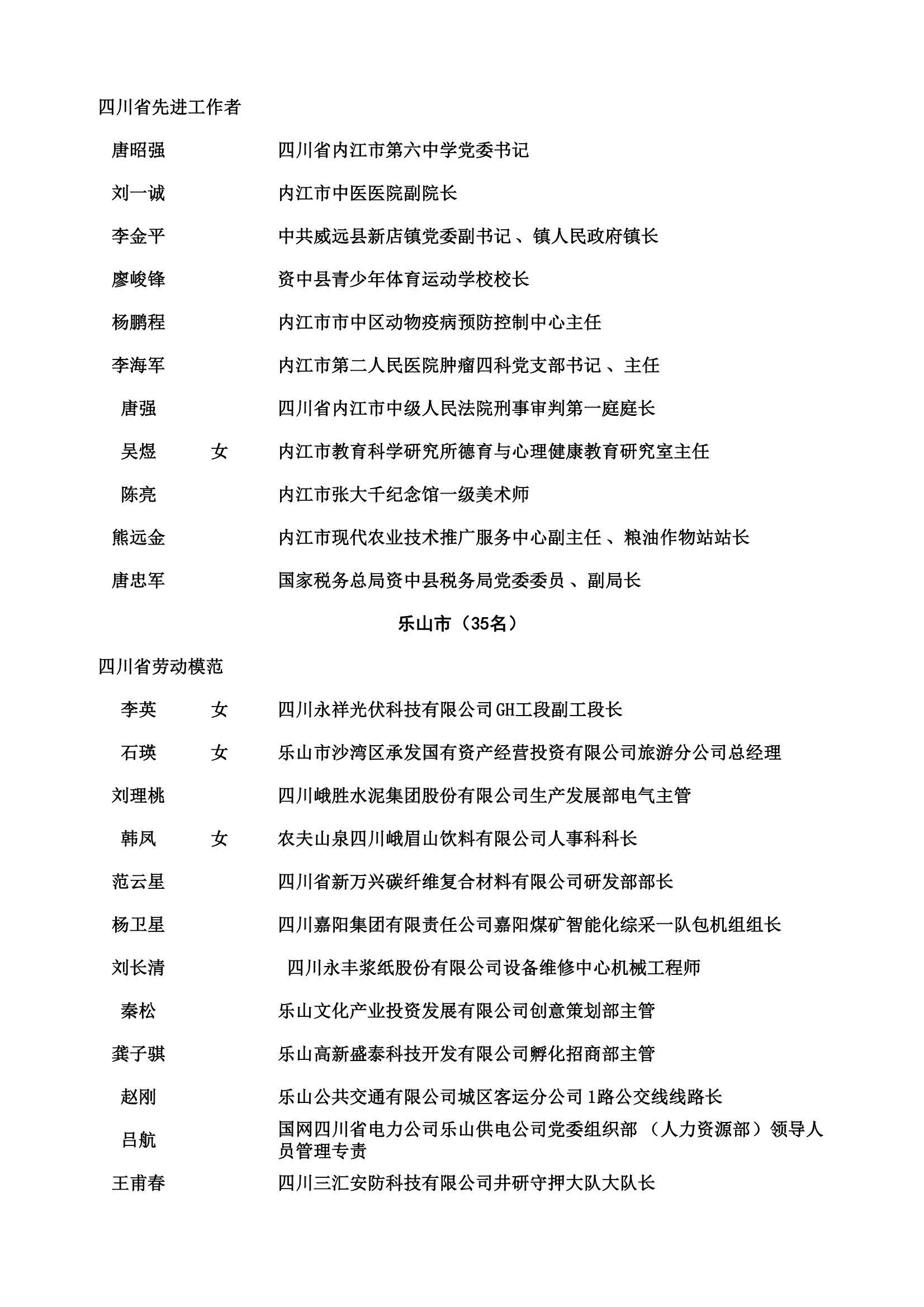 四川省第九届劳动模范和先进工作者拟表彰对象公示