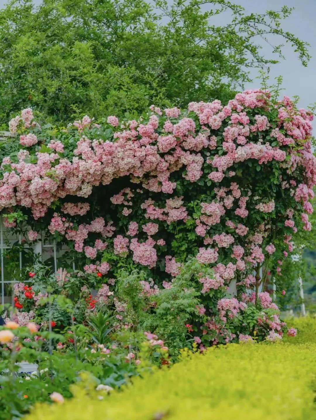 此外,在彭州宝山旅游区,每年四月至五月,蔷薇陆续绽放,漫山花朵迎风盛放,空气里尽是醉人香气。