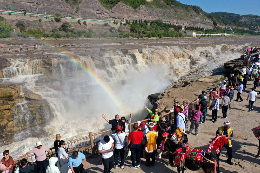 “昨天我们来吉县的时候,正好赶上这边下雨,今天就看到了非常震撼的黄色瀑布,让我不由想起唐代诗人李白的诗——‘黄河之水天上来,奔流到海不复回’。”来自北京的游客李楠说,“这一趟来得真是太值了。”