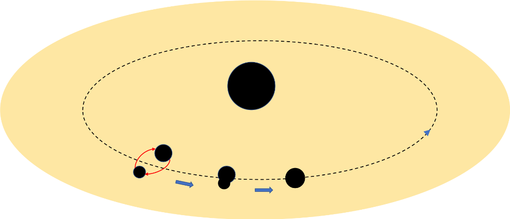 经过分析,团队把目标瞄准了引力波事件GW190814。该成果论文第一作者杨舒程博士介绍,GW190814里的两个黑洞的质量大小相差近10倍。这么悬殊的组合可能是它们曾和一个超大质量黑洞组成“三人组”,在彼此的引力拉扯下越靠越近;也有人认为它们诞生在活动星系核的吸积盘里,被周围其他致密天体的引力推搡着慢慢靠近,最终并合。