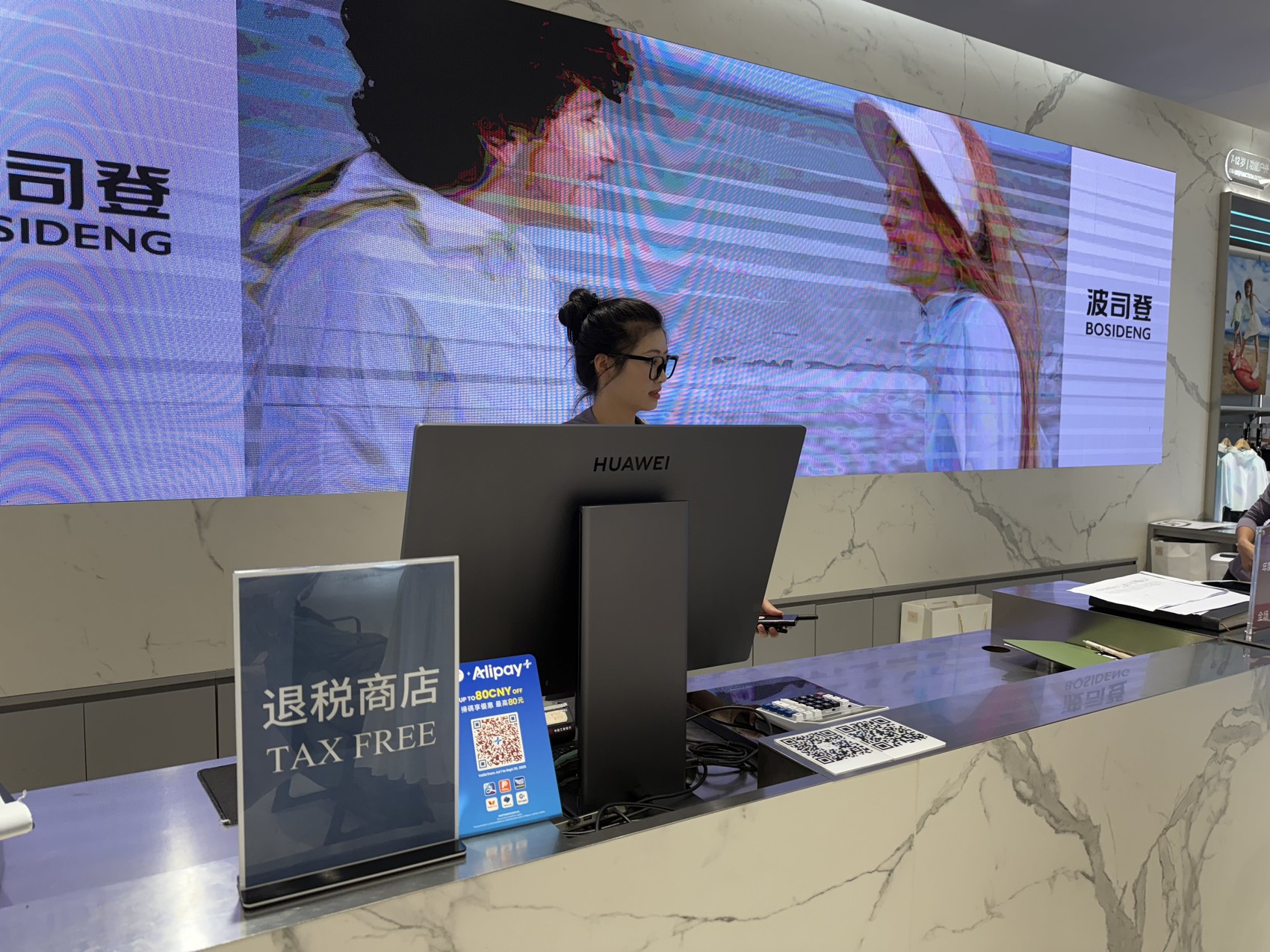 走进位于春熙路的百盛购物中心时代店,多家门店在收银处挂着“离境退税”的招牌。“外国人进店看到这个牌子,冲着它都要买点。”百盛购物中心波司登专卖店导购谭春玉告诉记者,今年6月,她接待了一位来自马来西亚的客人,带着全家人来这里“进货”,一口气买了5件加厚防风型羽绒服,价值2万多元。