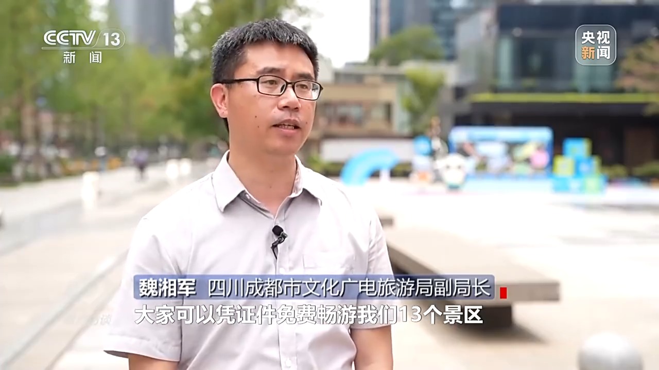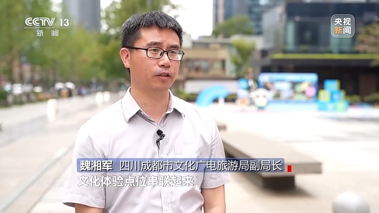 四川成都市文化广电旅游局副局长 魏湘军:我们精心设置了7条主题线路,把成都17个最具代表性的文化体验点位串联起来。这几天,我们也看到很多国内外游客朋友和运动员在熊猫基地、武侯祠、宽窄巷子、青城山、都江堰等地体验成都的文化,沉浸式感受这座公园城市、幸福成都。