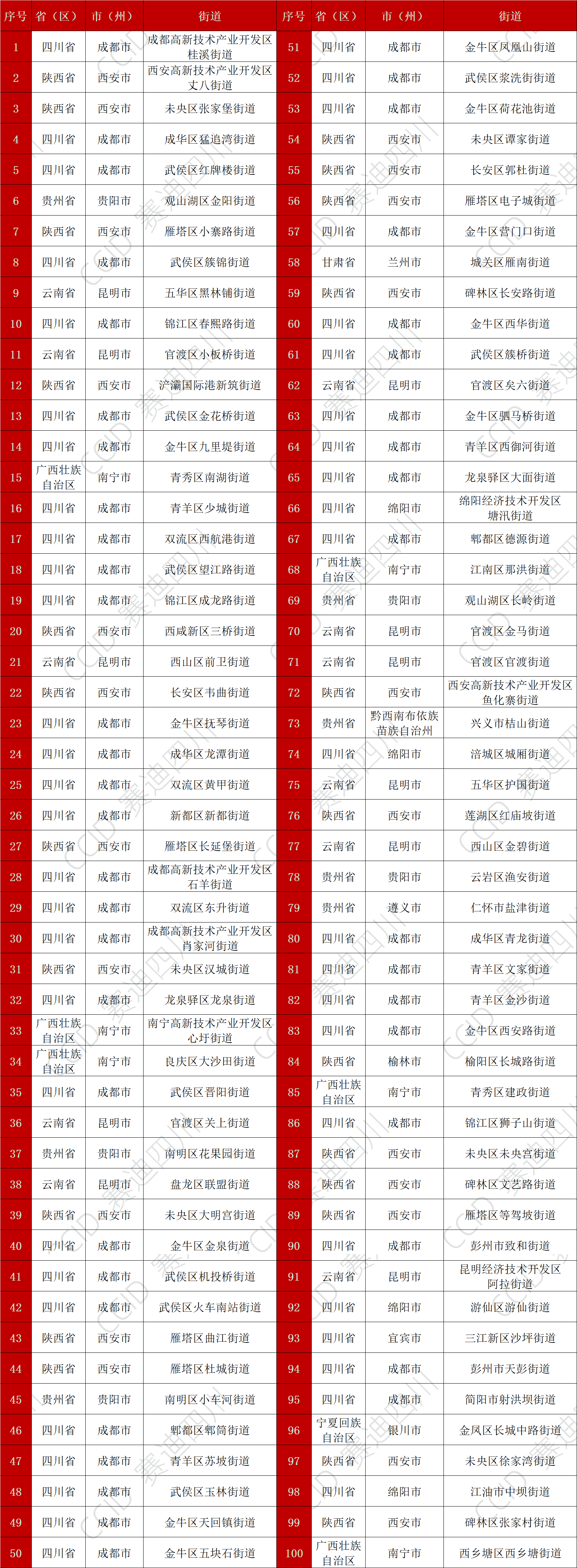 在“2025活力街道全国500强”中,四川共入围39个街道,成都38个街道入围。其中成都高新区桂溪街道、成华区猛追湾街道、武侯区红牌楼街道和簇锦街道4个街道入围全国100强。在“2025活力街道西部100强”中,四川共入围51个街道,成都46个街道入围百强。