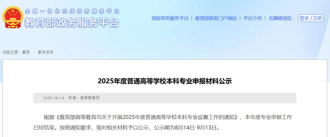 近日,教育部发布2025年度普通高等学校本科专业申报材料公示。其中,四川拟新增37个本科专业,涉及多所高校,公示期为8月14日-9月13日。