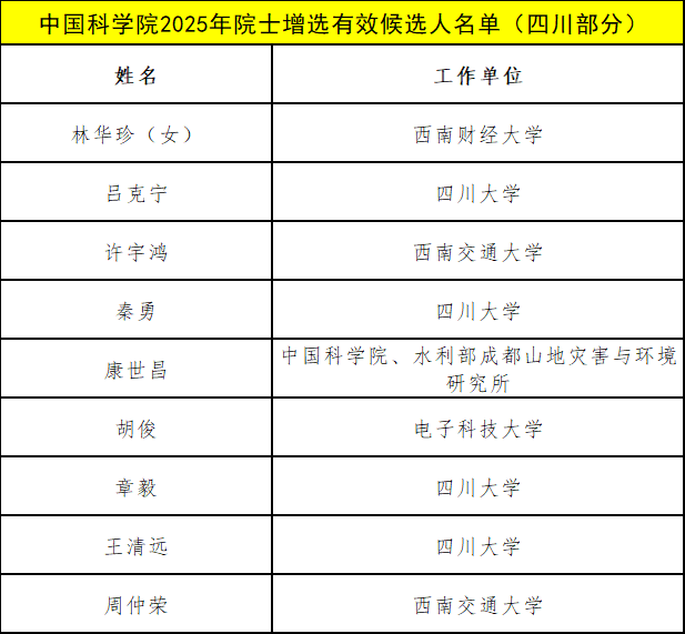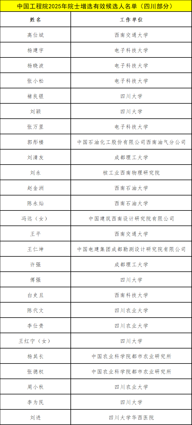 多位在川科研工作者入选!2025年两院院士增选有效候选人名单公布