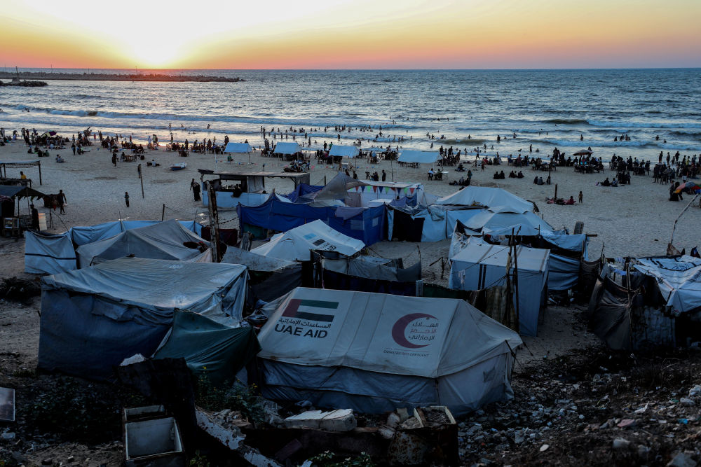 这是8月18日在加沙城拍摄的流离失所的巴勒斯坦人居住的帐篷。新华社发(里泽克·阿卜杜勒贾瓦德摄)