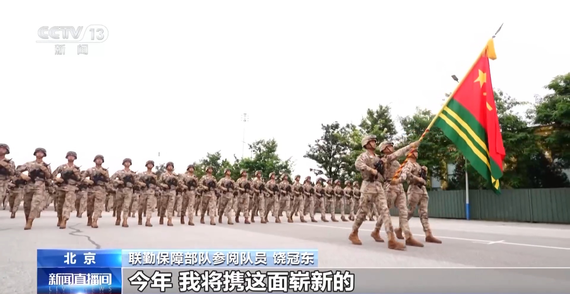 联勤保障部队参阅队员 饶冠东:2019年10月1日,我曾作为联勤保障部队徒步方队第一排面基准兵顺利通过天安门,接受党和人民的检阅。今年,我将携这面崭新的联勤保障部队军旗再次接受检阅,我感受到无比荣耀和十分自豪。