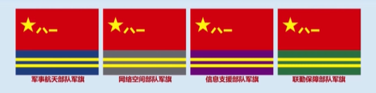 今年八一前夕,军事航天部队、网络空间部队、信息支援部队、联勤保障部队4支兵种军旗旗面样式正式发布,标志着我军构建起以八一军旗为主体、军兵种军旗为补充的新时代人民军队军旗体系。